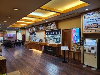 フロントでは館内着のお渡しやレジ精算などの接客が中心。